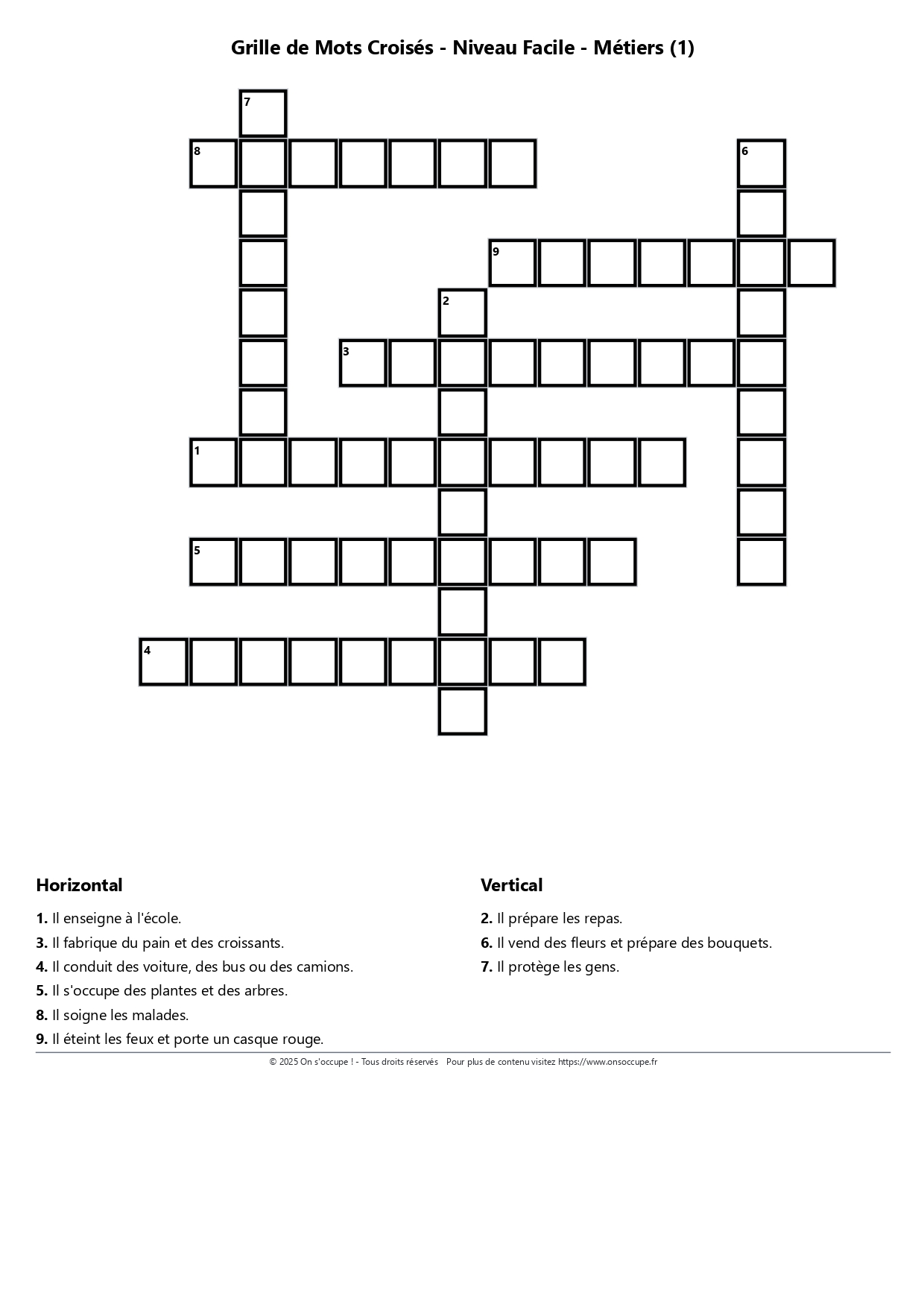Métiers (1) - Mots Croisés à imprimer gratuitement