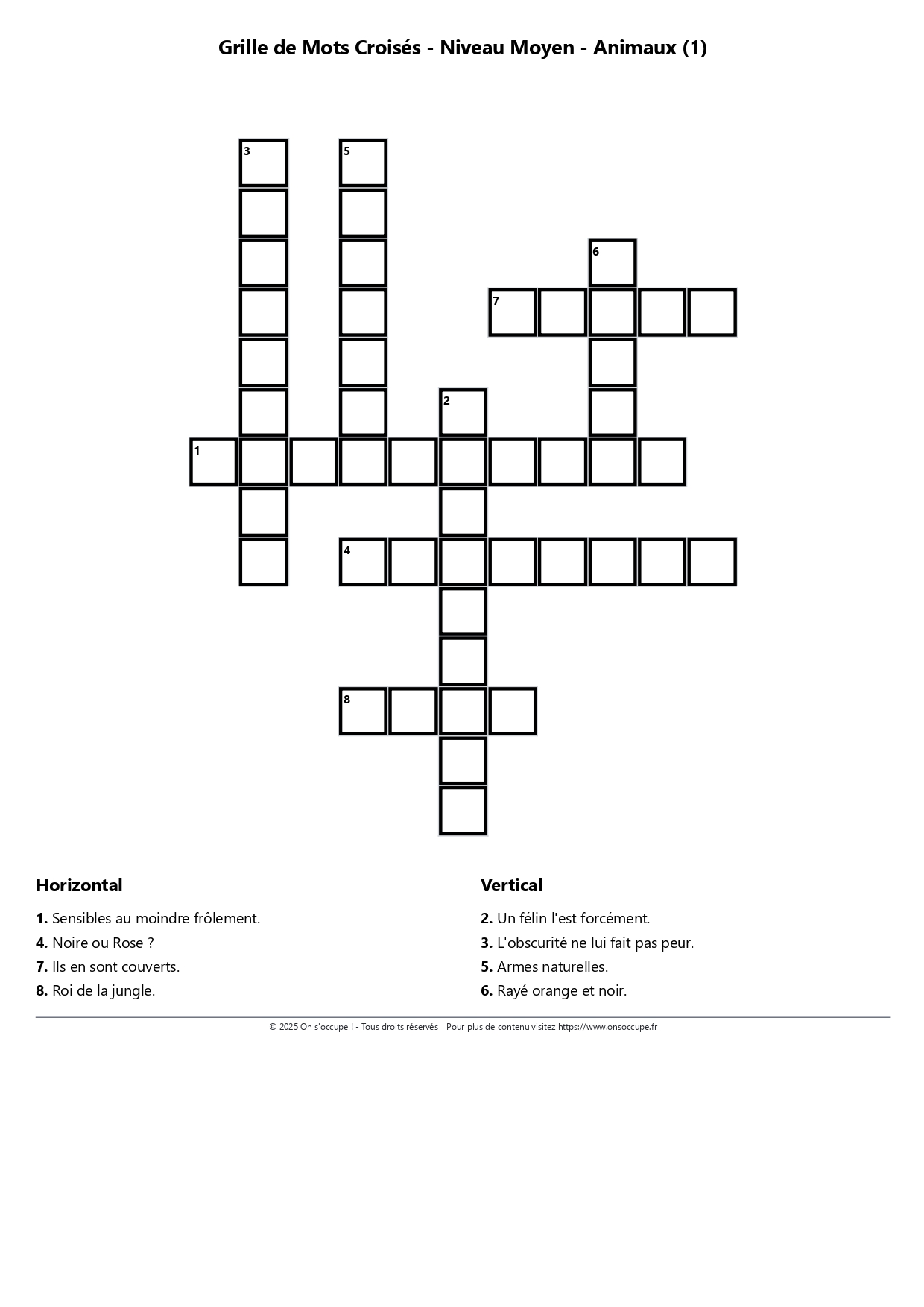 Une nouvelle grille sur l'univers des animaux et plus spécifiquement sur le thème des félins.